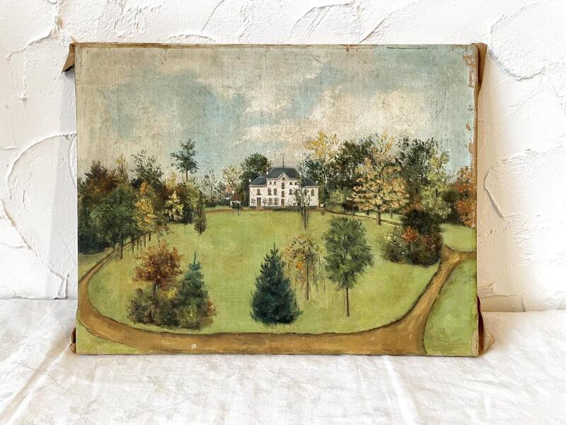プロの画家の作品というよりは素人の描いた作品かと思われますが、味わいのある雰囲気と温かさがブロカント的な魅力を漂わせ、捨てがたい雰囲気の一品です。