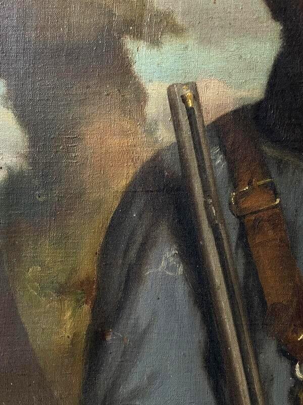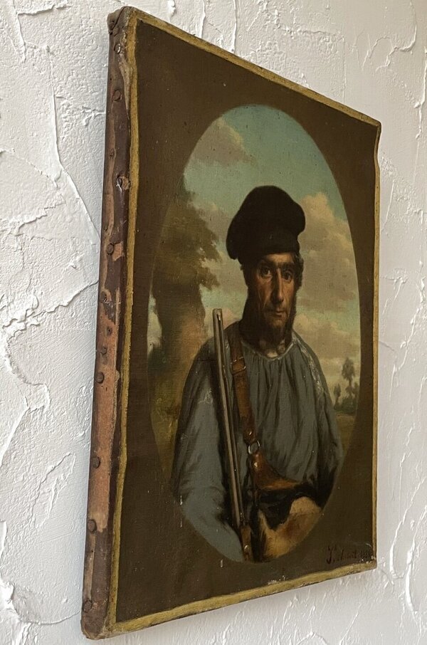《猟師の肖像》フランス アンティーク 1858年 油彩・キャンバス