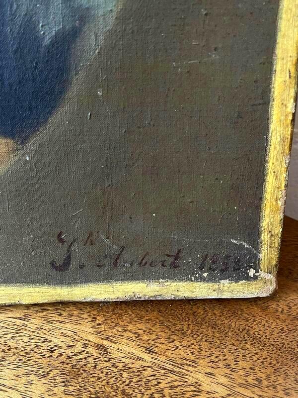 COMMENT/フランス19世紀中頃、1858年の年記があるキャンバス・油彩肖像画です。